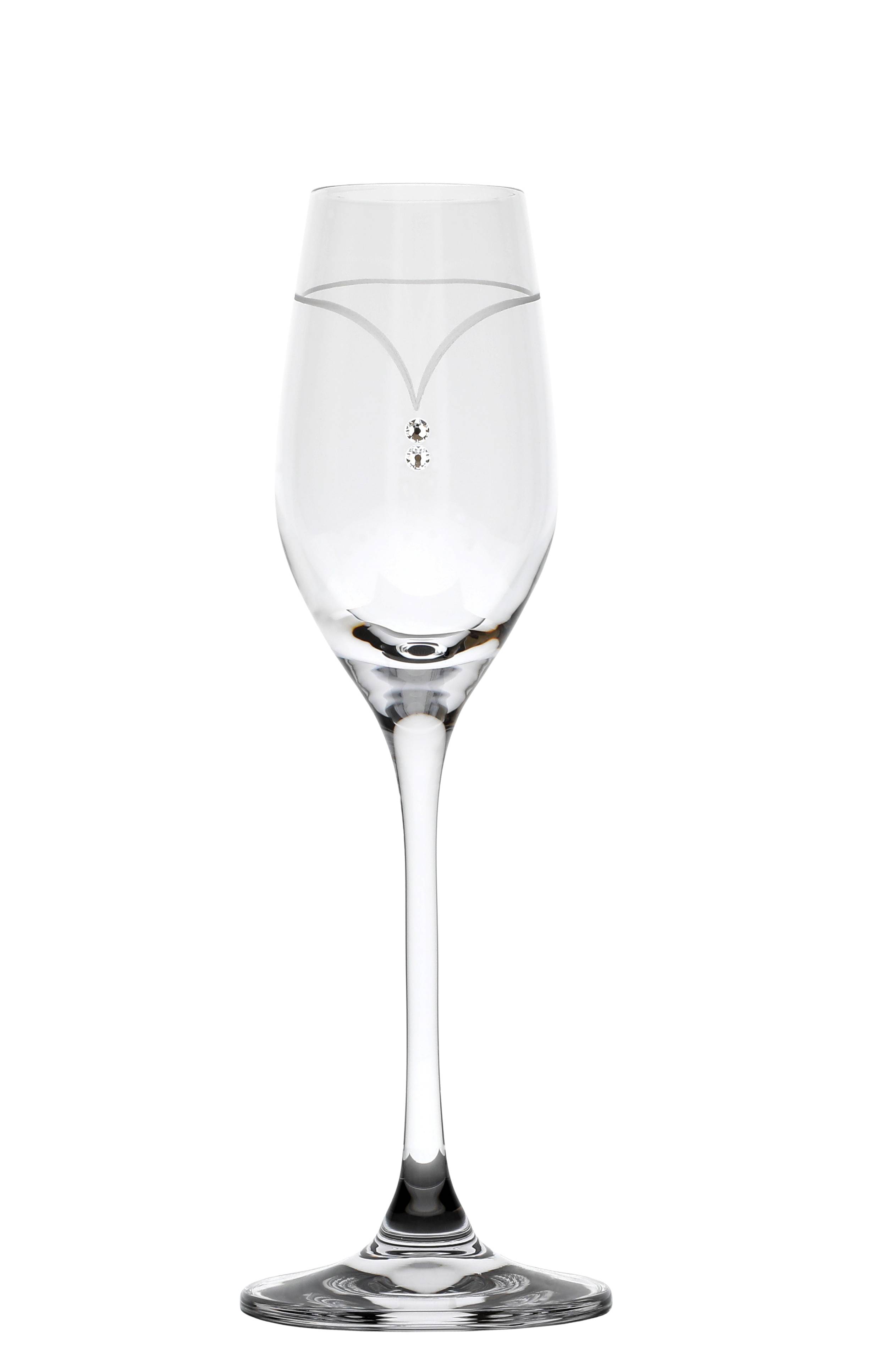 Balenie 6 kusov pohárov na víno z číreho skla, na stopke, s kryštálikmi SWAROVSKI. Každý pohár má 95 ml a obsahuje dva kusy SWAROVSKI kryštálikov.