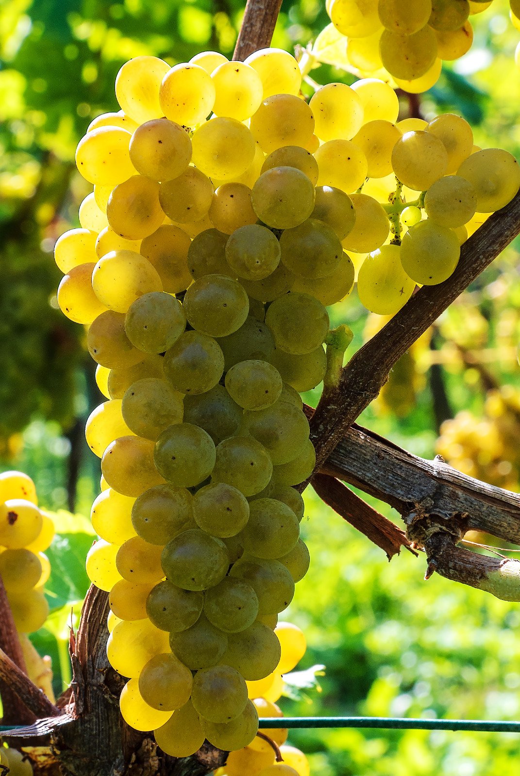 Bobule okrúhle až mierne eliptické bobule, zelenožltej až zlatožltej farby, pri vyzretí na líci so sklonom k hnednutiu. Dužina má odrodovú, jemne muškátovo-bylinnú chuť. Strapec je stredne veľký