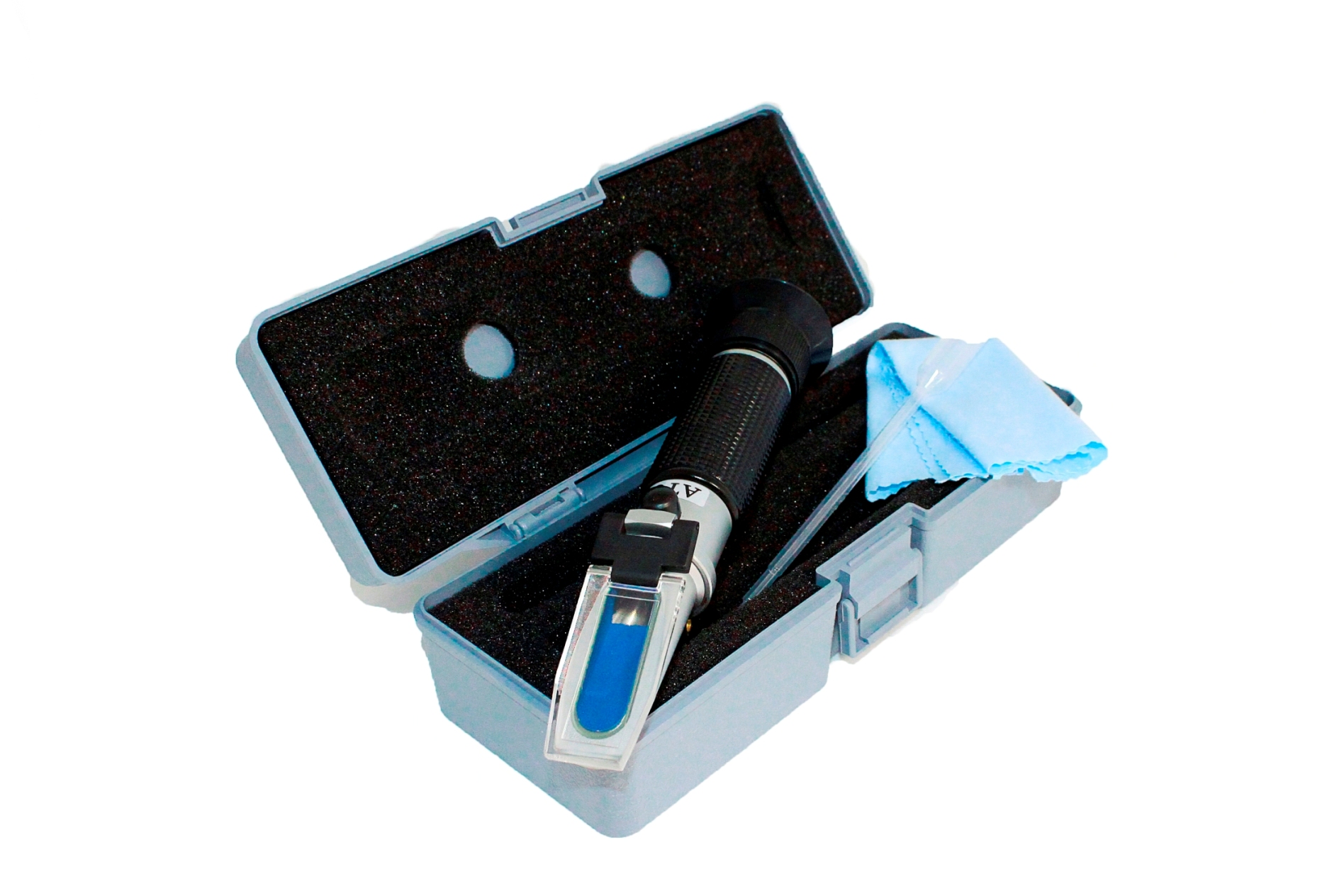 Refraktometer, šróbováčik pre kalibráciu, 10 pipiet, puzdro na prenášanie, slovenský návod.
