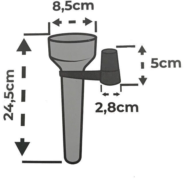 Je to čiastočne uspôsobená nádoba so stanovenou záchytnou plochou, ktorá sa vystavuje do prostredia, kde sa má množstvo zrážok zmerať. Uvedený zrážkomer je vyrobený z odolného plastu lievikovitého tvaru so stupnicou, ktorý je vybavený držiakom pre umiestnenie na drevenú násadu alebo palicu. Stupnica merania do 35 mm/m². Držiak je vhodný na drevenú násadu s priemerom 26mm.